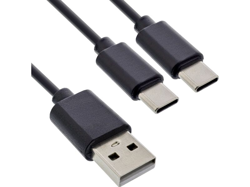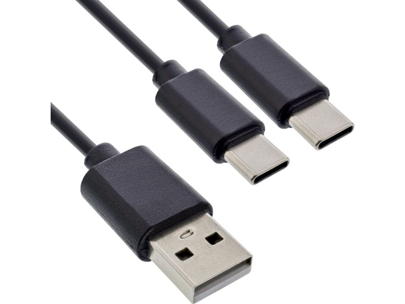 InLine 35126, 0,5 m, USB A, 2 x USB C, USB 2.0, Svart