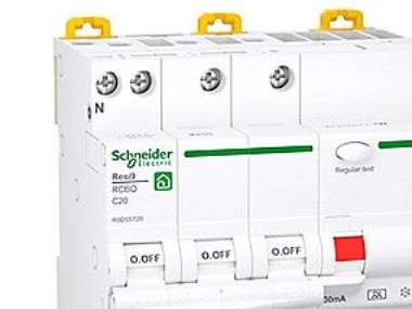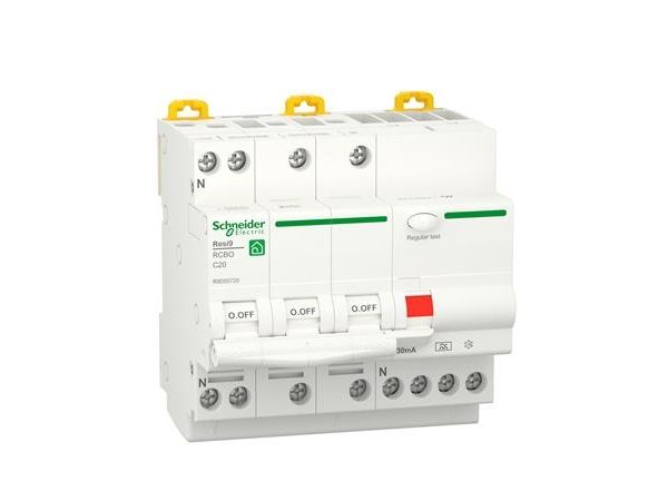 Resi9 XP RCBO/ kombinationsbrytare 3PN C-karaktär 20A 6kA 30mA klass A 90mm