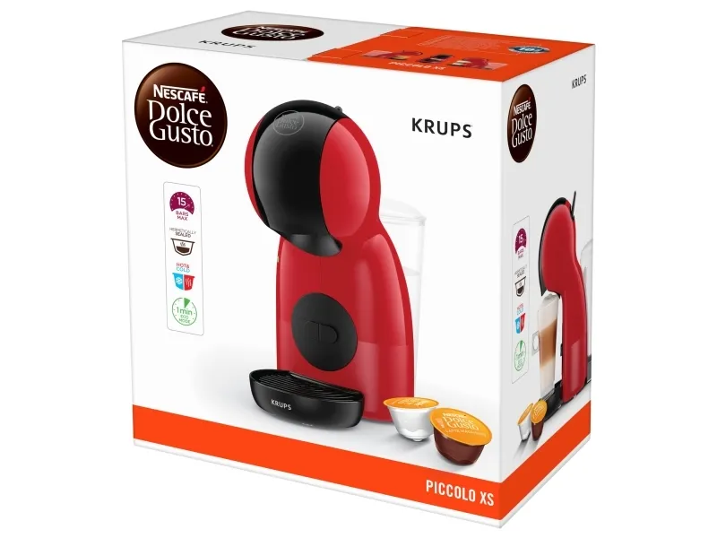 Krups NESCAFÉ DOLCE GUSTO KP1A35. Product type: Capsule coffee machine, Coffee maker type: Semi-auto, Water tank capacity: 0.8 L, Coffee input type: Coffee capsule, Reservoir for brewed coffee: Cup, Capacity in cups: 1 cups, Number of spouts: 1. Power: 1600 W. Product colour: Black, Red