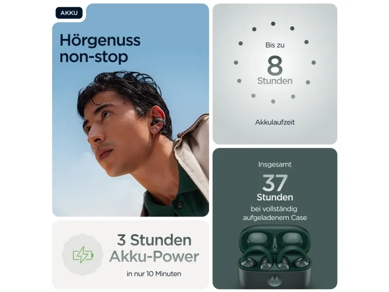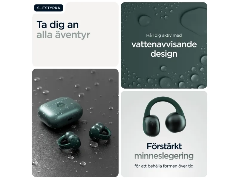 Motorola moto buds loop är utformade för att ge en fantastisk lyssningsupplevelse. Med funktioner som brusreduceringsteknik och inbyggd mikrofon ger dessa helt trådlösa hörlurar klar ljudkvalitet och smidig kommunikation. Membranets diameter på 12 mm garanterar ett rikt ljud, medan stereoljudläget förbättrar den totala lyssningsupplevelsen. Bluetooth 5.4-tekniken erbjuder stabil och pålitlig trådlös anslutning, vilket gör det enkelt att njuta av musik eller ta emot samtal när du är på språng. Dessa hörlurar är konstruerade för bärbar elektronik och uppfyller behoven hos en aktiv livsstil. Det medföljande laddningsfodralet är praktiskt för användare som kräver funktionalitet under dagliga aktiviteter.