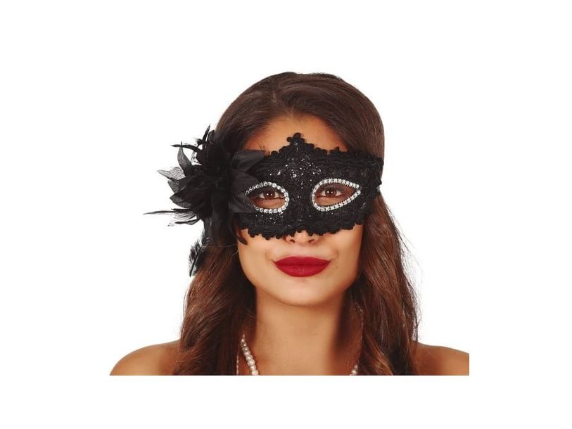 Sort halvmaske med blomst