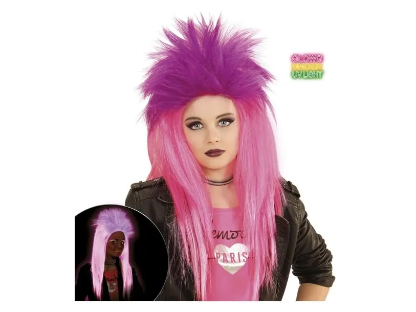 Rosa och lila neonperuk