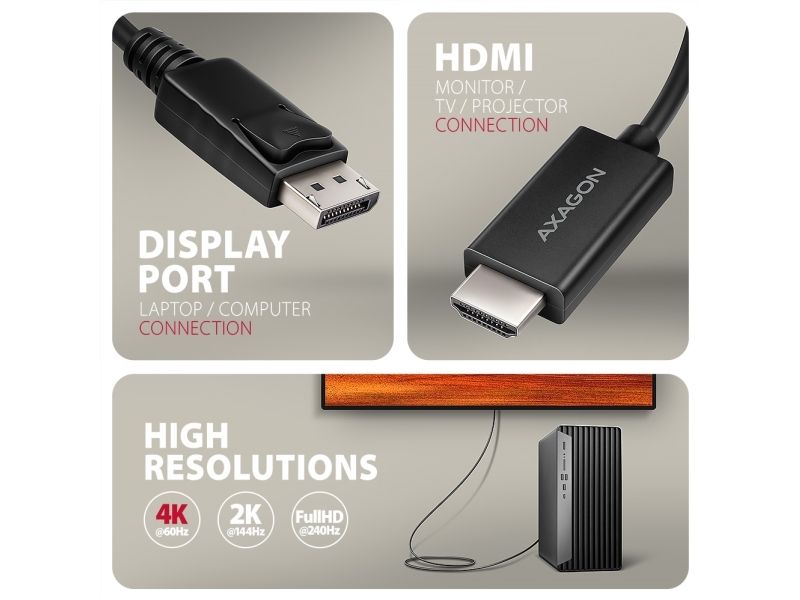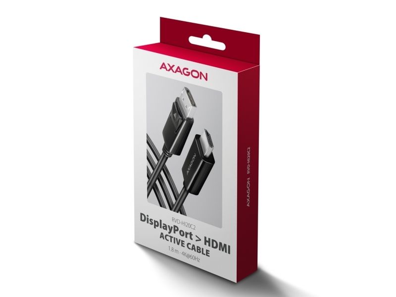 AXAGON RVD-HI20C2 - Videokort - DisplayPort hane spärrad till HDMI hane - 1.8 m - stöd för 4096 x 2160 vid 60 Hz, aktiv omvandlare
