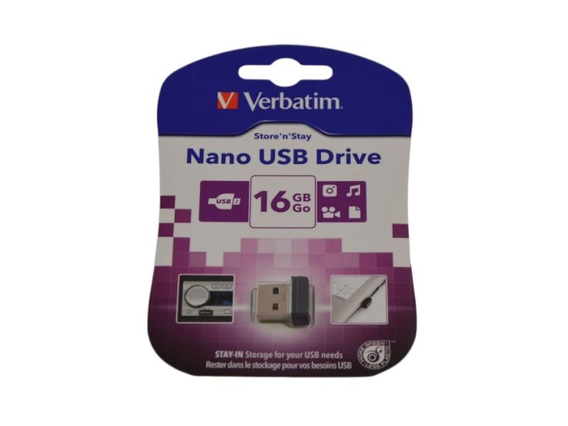 Easily add more storage options to your notebook computer or car stereo with Verbatim's stay-in Store 'n' Go Nano USB drive. Allowing storage in a drive that fits in the body of a Nano receiver, the Nano USB drive features a snag-free, low-profile design that is small enough to leave in your laptop or stereo, without getting in the way! Perfect for use in your laptop or car, this dimesized drive can be easily removed for fast file sharing. This always there, always ready USB flash drive is available in capacities of 4GB, 8GB, 16GB, 32GB and 64GB.