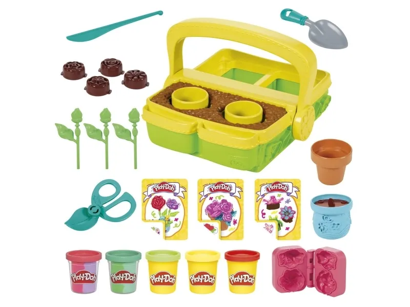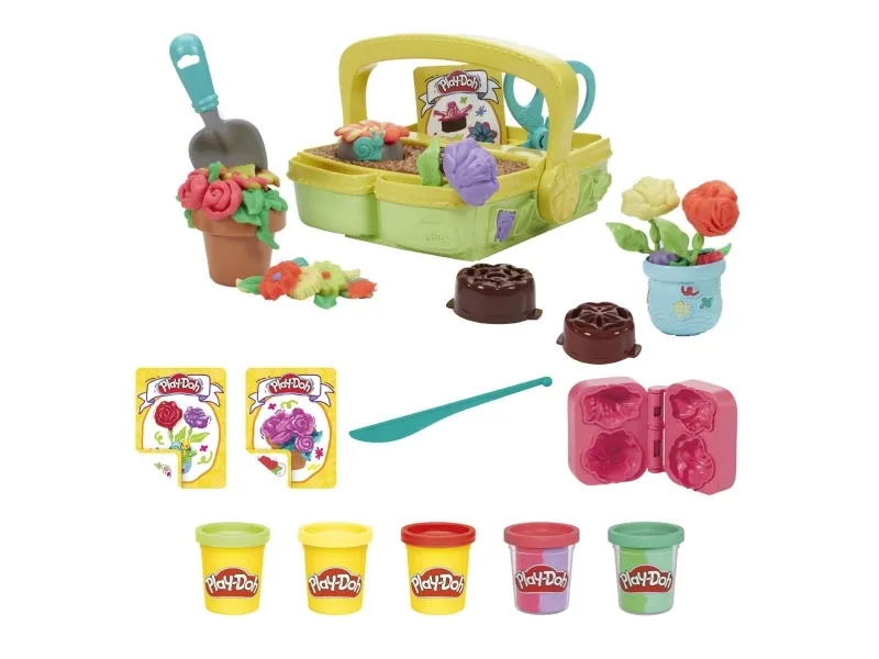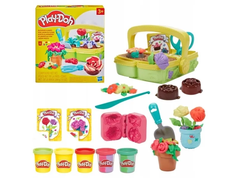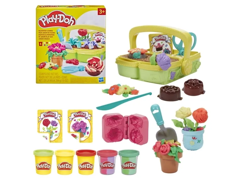 Låt fantasin blomma med Play-Doh Blooming Flowers-leksetet för barn! Trädgårdsleksaken för inomhuslek är perfekt när barnen vill leka florist, oavsett säsong. Trädgårdslådan och blomsterbrickorna skapar fyra olika Play-Doh-blomsterformar och bokformen skapar ytterligare två. Visa upp och håll blommorna och stjälkarna på plats med blomkrukan och vasen. Fem Play-Doh-burkar och tre instruktionskort hjälper fantasin att flöda med denna sensoriska leksak. Ge en present till barn från 3 år och få deras fantasi att blomma! PLAY-DOH och HASBRO och alla relaterade varumärken och logotyper är varumärken som tillhör Hasbro, Inc.
