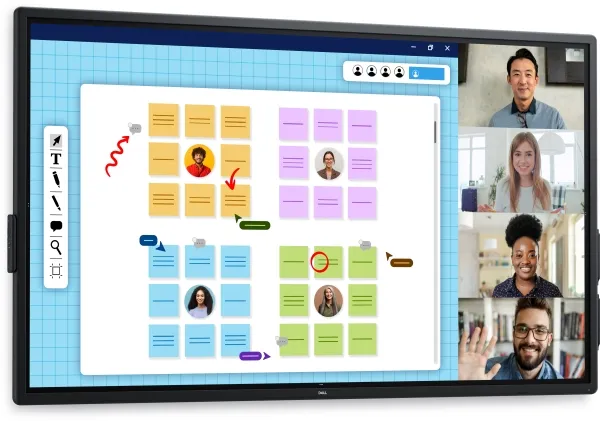 Dell Pro 75 Plus 4K Touch Monitor P7525QT har en 75-tums 4K UHD-skärm med InGlass-pekteknik som ger en interaktiv upplevelse. Med en upplösning på 3840 x 2160 och en ljusstyrka på 400 cd/m2 ger den klara och livfulla bilder från en bred 178-graders betraktningsvinkel. Skärmen är utrustad med inbyggda högtalare som levererar en total uteffekt på 20 watt, vilket säkerställer att ljudkvaliteten matchar bilden. Dessutom har den stöd för flera anslutningsmöjligheter, inklusive HDMI, DisplayPort och USB-C, vilket gör den mångsidig för alla installationer. Med sina robusta miljögodkännande, inklusive ENERGY STAR-certifiering och EPEAT Gold-överensstämmelse, är denna bildskärm utformad för prestanda och hållbarhet.