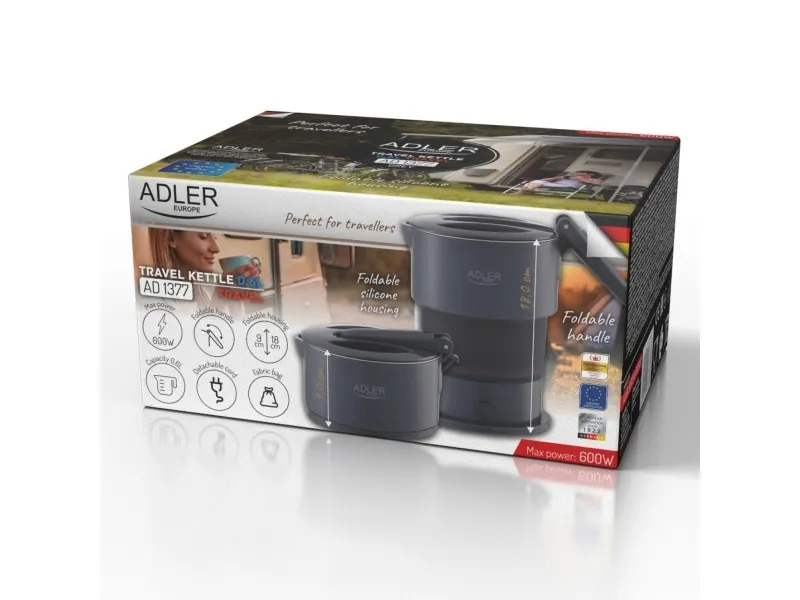 Adler AD 1377G, 0,6 l, 600 W, Grå, Plast, Silikon, Rostfritt stål, Sladdlös, Hålla sig varm funktion