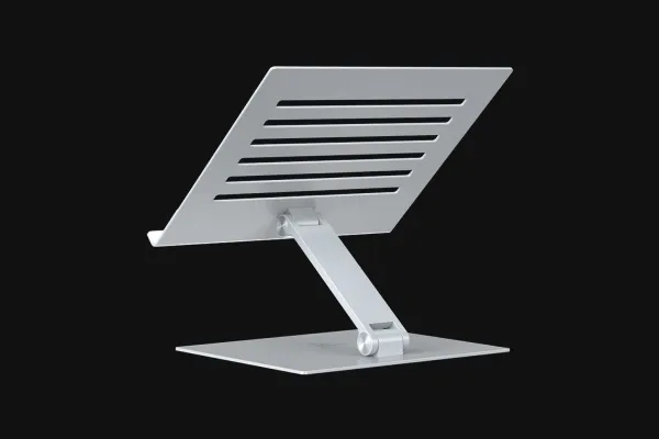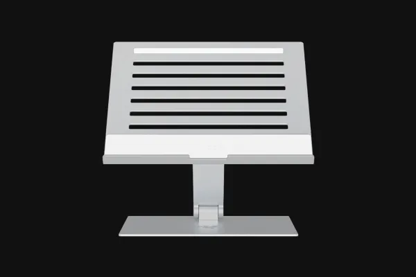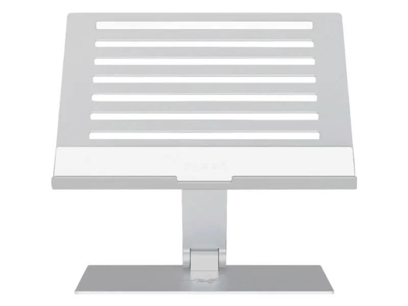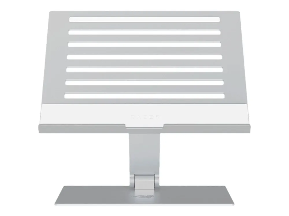 The Razer notebook stand is designed to provide support for comfortable laptop use. Constructed from durable anodized aluminum, this stand offers a sleek aesthetic. With a 180° tilt feature, it allows for flexible viewing angles, accommodating notebooks up to 18 inches in size, making it a versatile addition to any workstation.