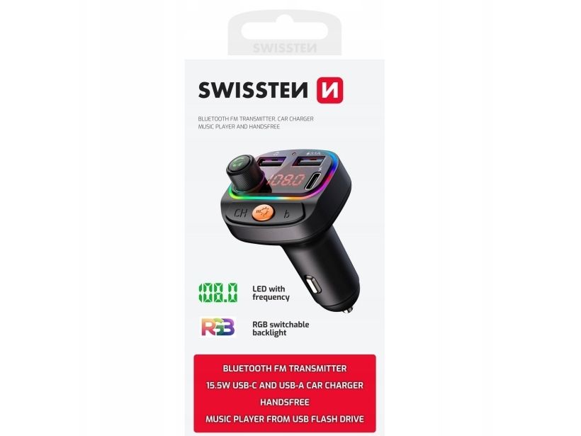 Swissten RGB Bluetooth FM-sändare 2x USB / USB-C 20114031