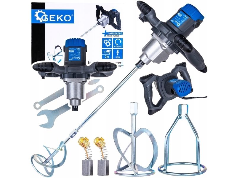 Geko elektrisk omrörare för färg och bruk 1200W 2 växlar med extra omrörare
