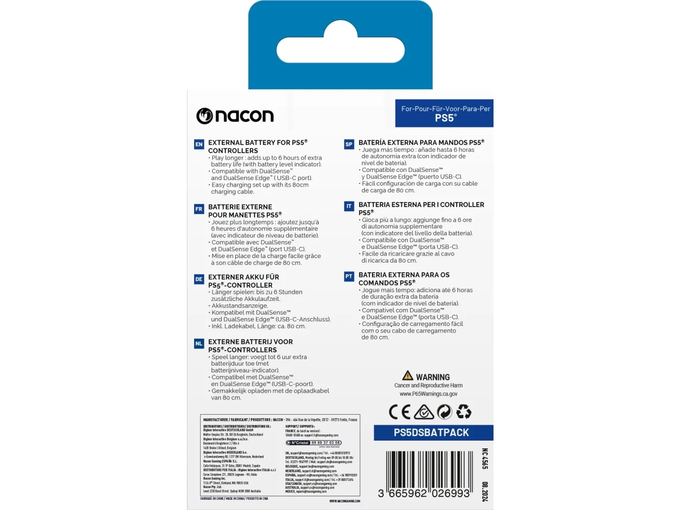 NACON External Battery, PlayStation 5, Batteri till spelkontroll, Vit, Sony, 5 V, 1.2 A