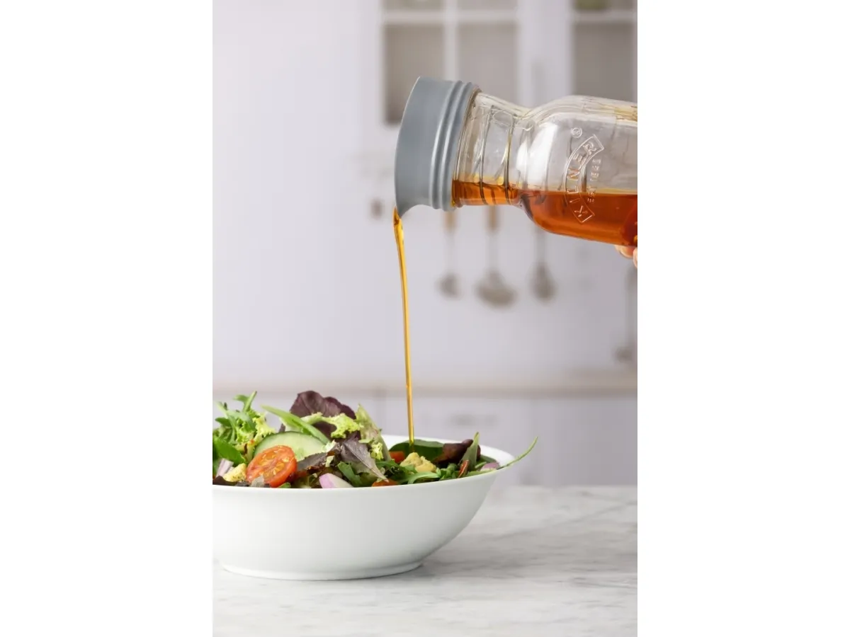 Skapa, servera och förvara läckra hemlagade salladsdressingar, vinägretter och såser med denna salladsdressingmaskin. Designad för att vara shakien, med en invändig lindad fjäder för att perfekt blens blandningar, med en inbyggd pip för wasy pouring. Den breda halsbasen gör att ingredienser kan tillsättas med lätthet, med präglade kapaciteter på sidan hjälper till att mäta vätskor. Locket och fjädern kan enkelt tas bort och läggas i diskmaskinen för rengöring. Perfekt att förvara i kylen för fräschör med hjälp av locket i ett stycke, eller ställa på bordet när du äter.