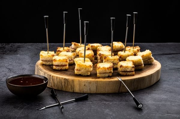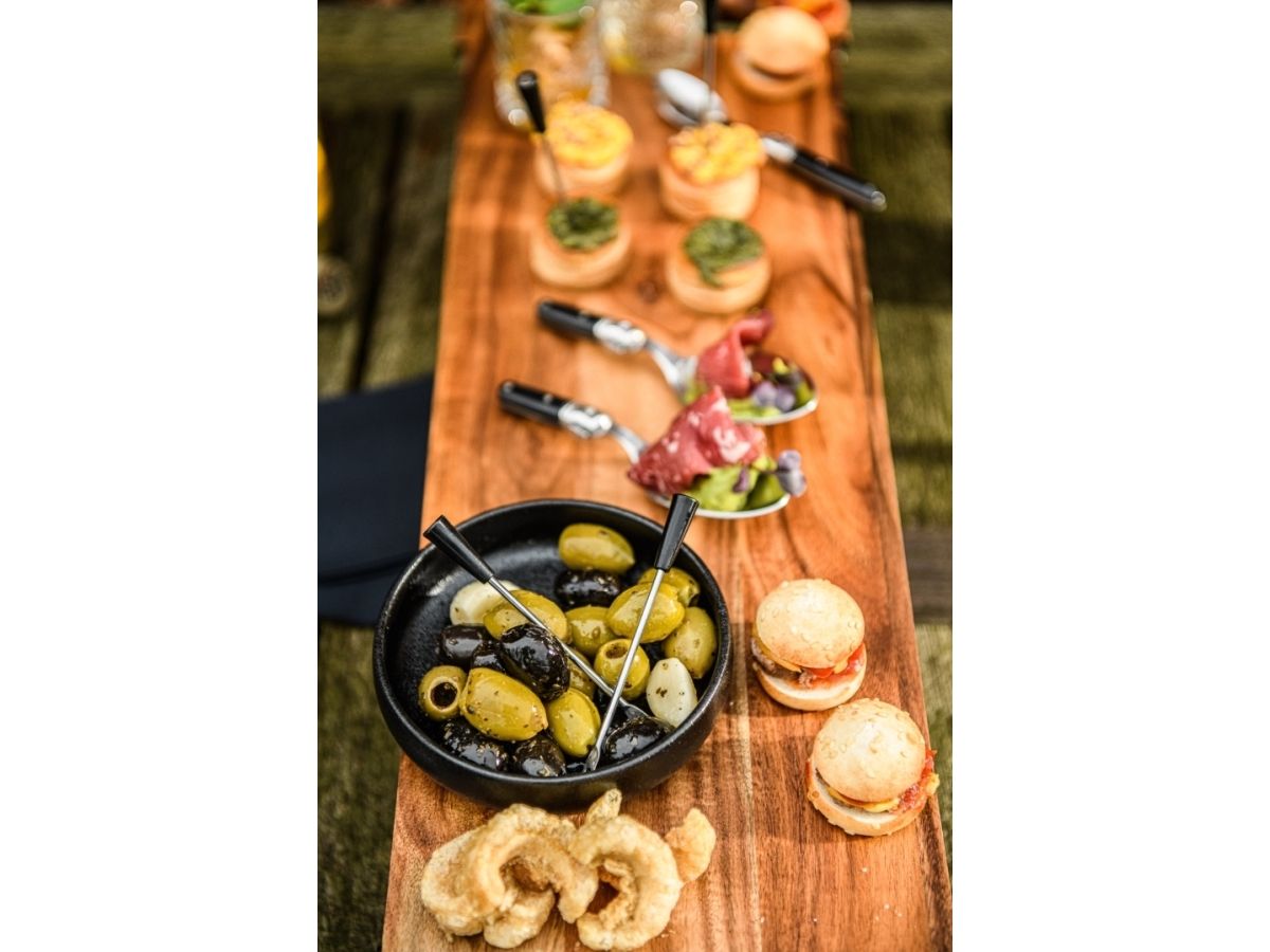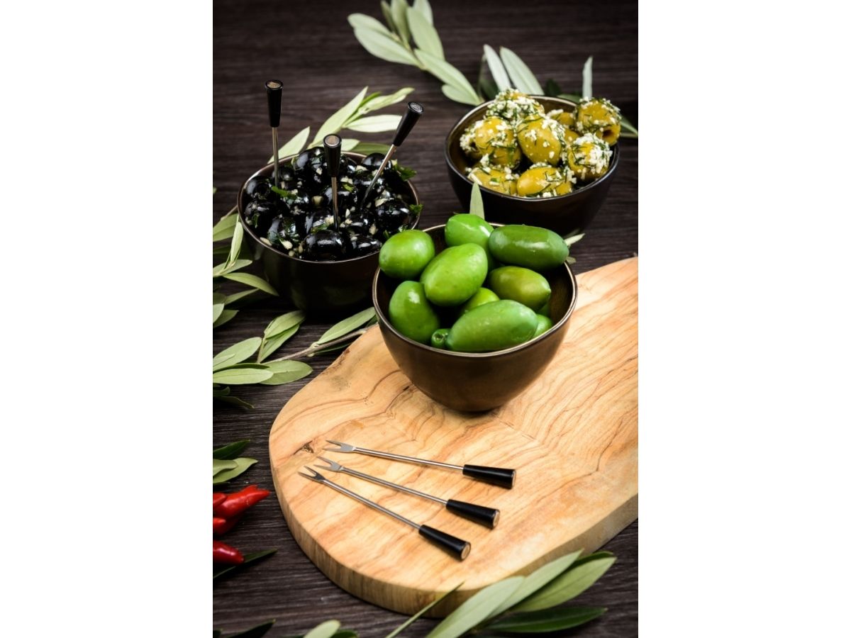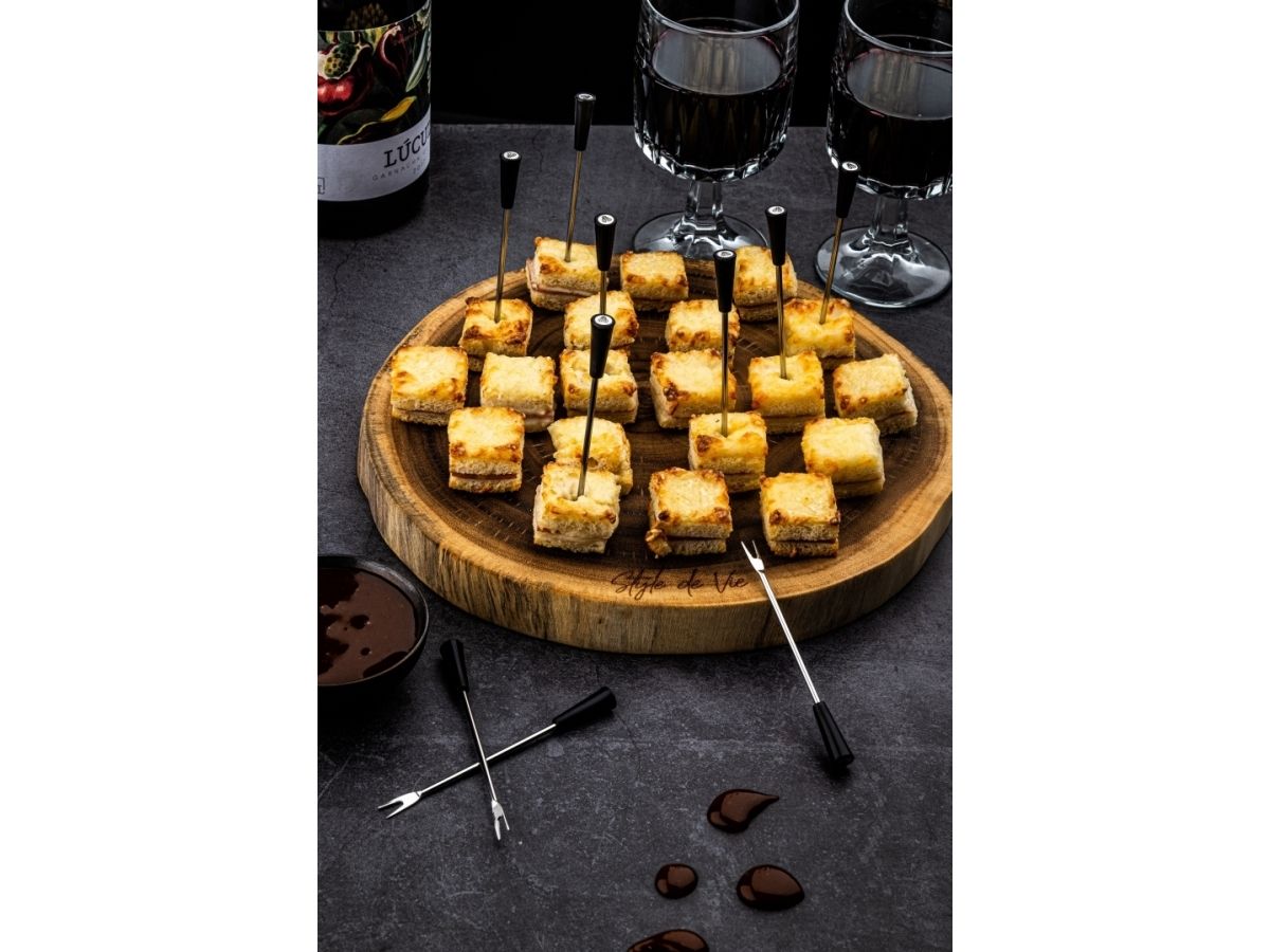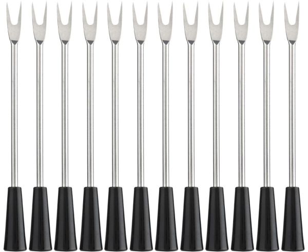 Tapasgaffel i ett set om 12 delar. Ett måste för alla snacksbord. En oliv eller saftigt fikon spettat på en tapasgaffel är bekvämt och snyggt. De tål diskmaskin, vilket gör dem hållbara. Tapasgafflarna är förpackade i en svart låda.