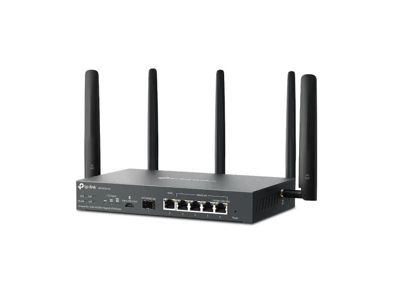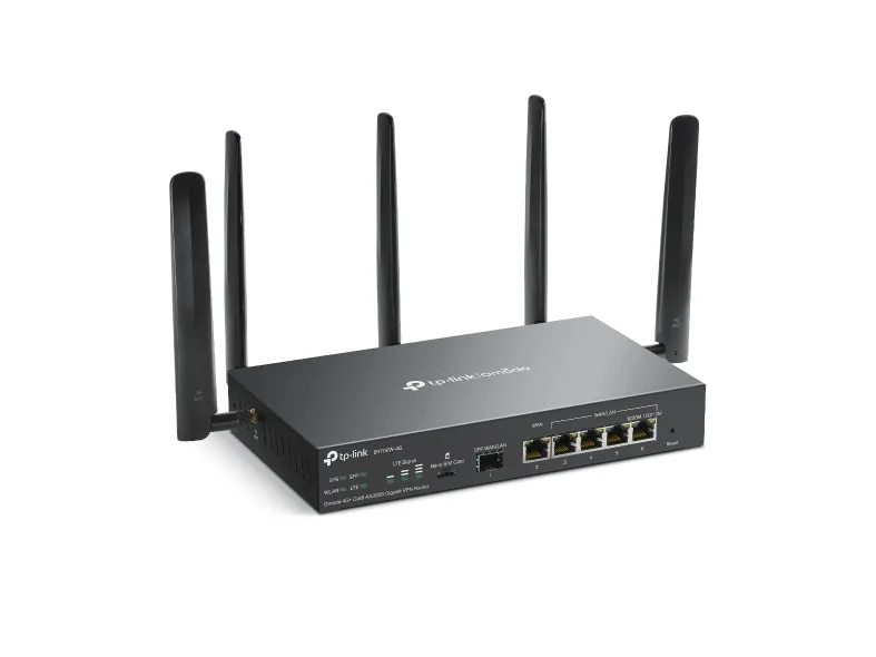 - Dual Band - HE160 - OFDMA - 1024 QAMTP-Link Omada 4G+ Cat6 AX3000 Gigabit VPN Router. Wi-Fi band: Dual-band (2.4 GHz / 5 GHz), Top Wi-Fi standard: Wi-Fi 6 (802.11ax), WLAN data transfer rate (max): 2402 Mbit/s. Ethernet LAN interface type: Gigabit Ethernet. Mobile network generation: 4G, 3G standards: HSDPA, HSUPA, WCDMA, 4G standard: LTE-TDD & LTE-FDD. NAT functionality: • One-to-One NAT • Multi-Net NAT • Virtual Server • Port Triggering† • NAT-DMZ •.... Product type: Desktop/pole router, Product colour: Black, LED indicators: LAN, LTE, Status, System, WAN
