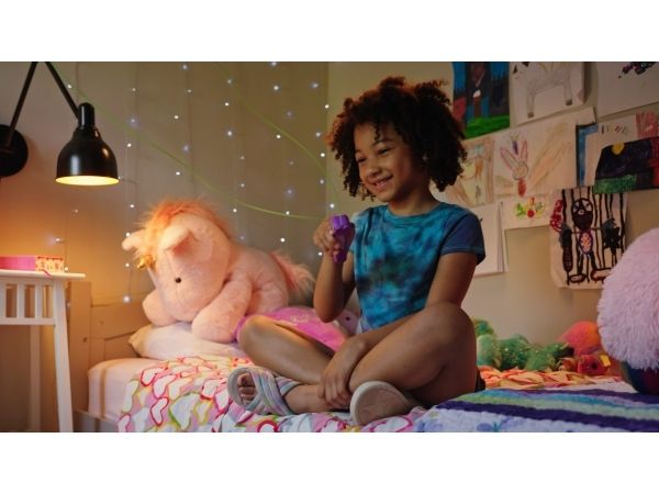 Tryck på den övre knappen på Luma för att få snöret att flyga