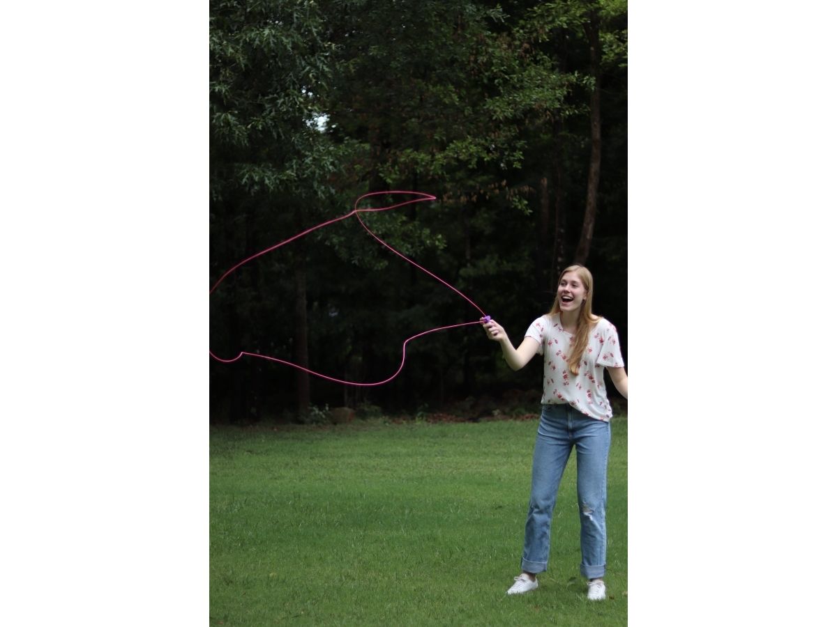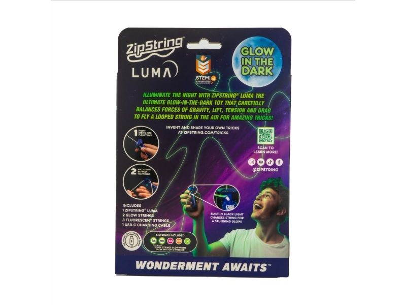Luma ZipString gör det otroligt roligt att leka och göra trick i mörkret – både inomhus och utomhus. Med Luma ZipString kan du skapa lysande figurer och former som flyger genom luften.