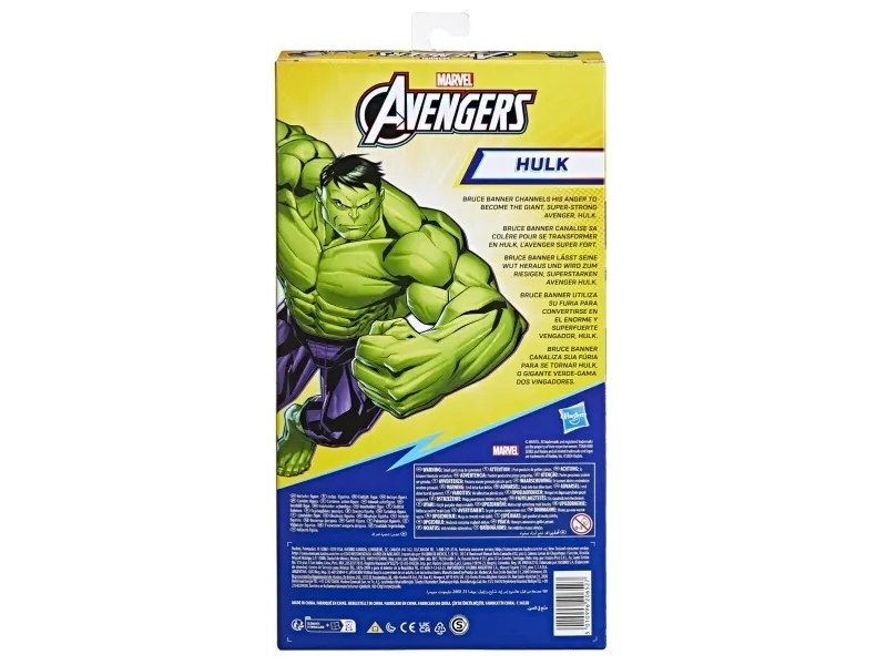 Barnen kan skapa sina egna strider mellan superhjältar och skurkar med den här Hulken-actionfiguren från Marvel Avengers Titan Hero Series Deluxe! Den här 30 cm stora Avengers-leksaken har rörliga armar och ben, så att barnen kan ställa figuren i olika poser när de leker. Hulk-leksaken är kompatibel med de flesta Titan Hero Blast Gear-avfyrare och specialeffektpaket, som barnen kan fästa vid porten på figurens rygg för att skjuta iväg projektiler eller höra ljudeffekter. (Blast Gear-avfyrare och specialeffekterna säljs separat, i mån av tillgång.) Hulken-figuren levereras i en förpackning med fönsterruta och är en toppenpresent till Marvel-fans från 4 år! Håll utkik efter fler leksaker från Hasbros exklusiva Titan Hero Series. (Säljs separat, i mån av tillgång.) Copyright MARVEL. Alla varumärken och registrerade varumärken tillhör respektive ägare. Hasbro och alla relaterade namn är varumärken som tillhör Hasbro.