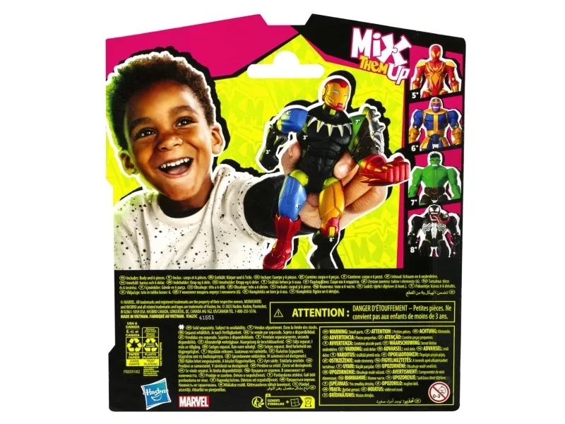 Till och med de mäktigaste superhjältarna behöver ibland en hjälpande hand … fot, knytnäve eller ett tillbehör! MixMashers Marvel-actionfigurerna är samlarobjekt med delar som kan tas isär, blandas och sättas ihop till helt egna, unika figurer. De hållbara MixMashers-leksakerna på 12 cm har 16 fästpunkter och universalkopplingar som kan kombineras i hela utbudet. Sugen på en massa fler superkrafter? Bygg figurer med maximal superkraft genom att samla på tillbehören och delarna som ger extrakrafter! Håll utkik efter fler MixMashers-figurer att samla på eller ge bort i present på födelsedagar och högtider! (Säljs separat, i mån av tillgång.) Copyright MARVEL. Alla varumärken och registrerade varumärken tillhör respektive ägare. HASBRO och alla relaterade varumärken och logotyper är varumärken som tillhör Hasbro, Inc.