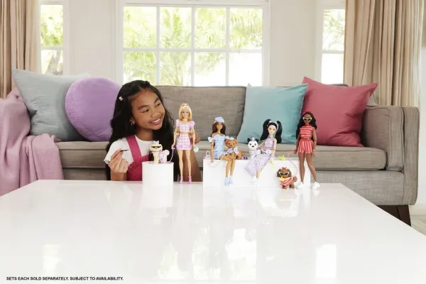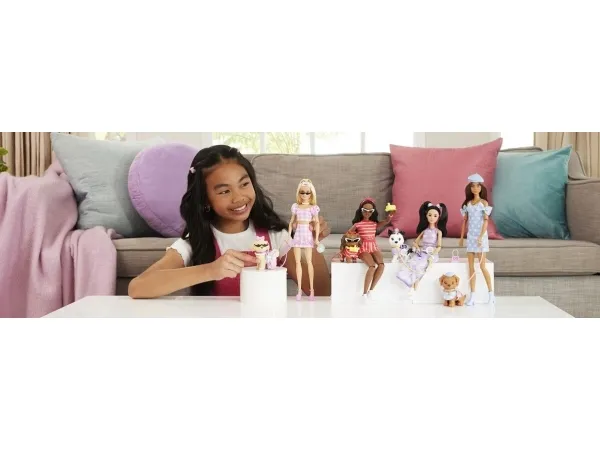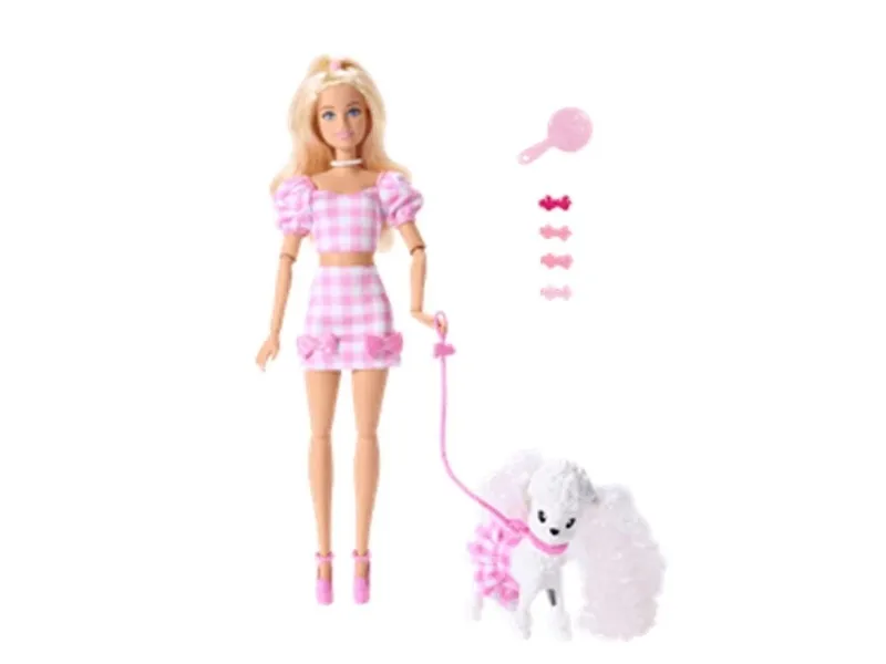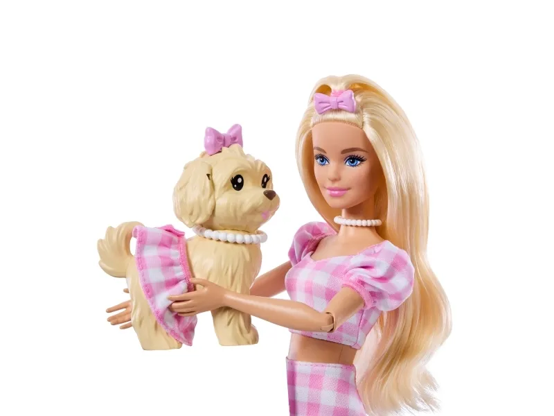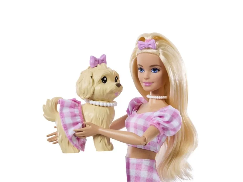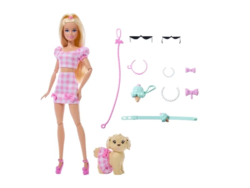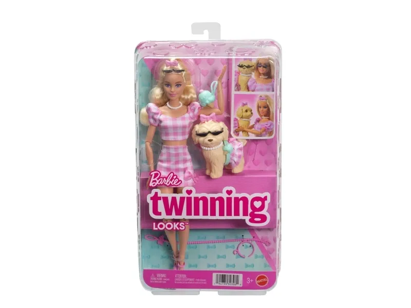 Double the styling fun with Barbie Twinning Looks! Each Barbie doll comes with a pawsitively darling pet dog in a matching outfit. With a set of coordinated accessories for both Barbie and her dog, kids can style the pair in twinning looks from head to toe! Bows, necklaces, and more add pops of personality. From a walk in the park to window shopping around town, this adorable pair is dressed for anything! Each set sold separately, subject to availability. Doll cannot stand alone. Colours and decorations may vary.Barbie Twinning Looks Fashion Doll with Pet Dog, Matching Pink Clothes & Accessories, Blonde. Doll type: Fashion doll, Doll's gender: Female, Recommended age (min): 3 yr(s), Suggested gender: Girl. Height: 295 mm, Weight: 300 g. Material: Fabric, Plastic, Product colour: Multicolour