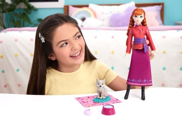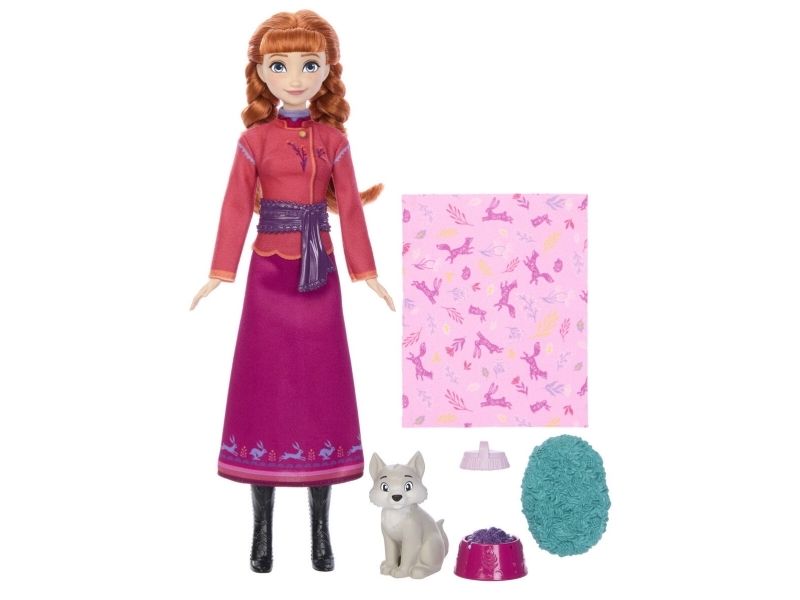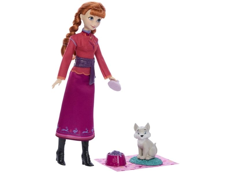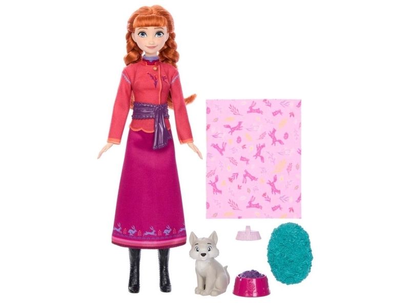 Disney Frozen Anna Fashion Doll & Wolf Cub-figur med 4 tillbehör
