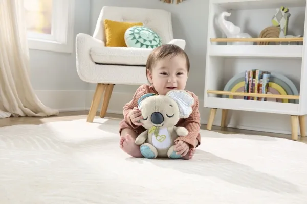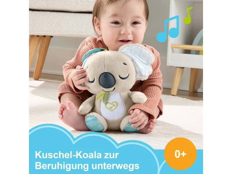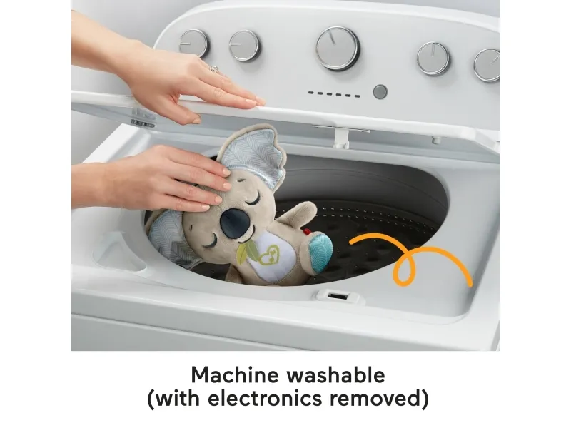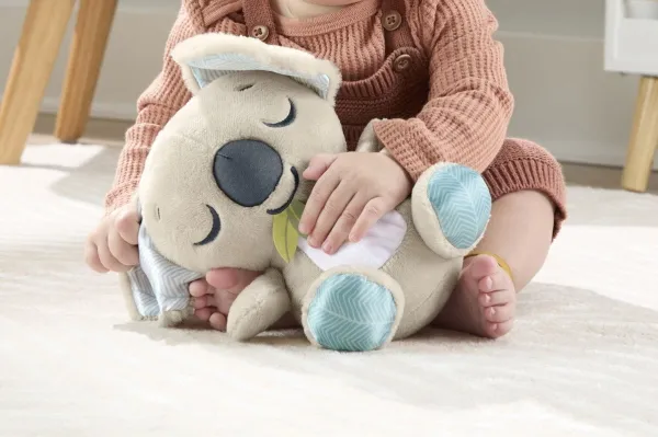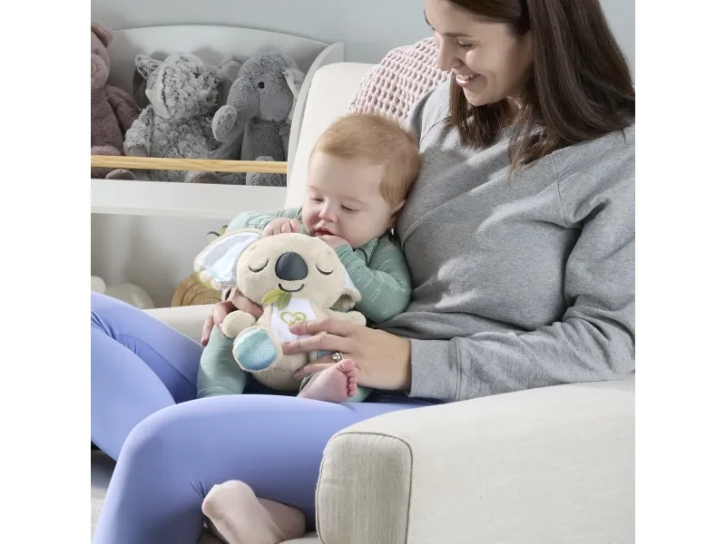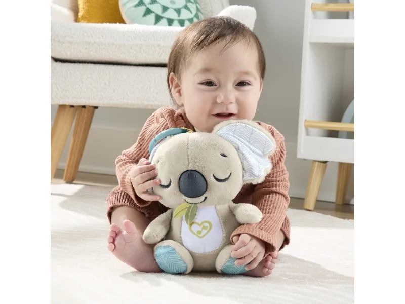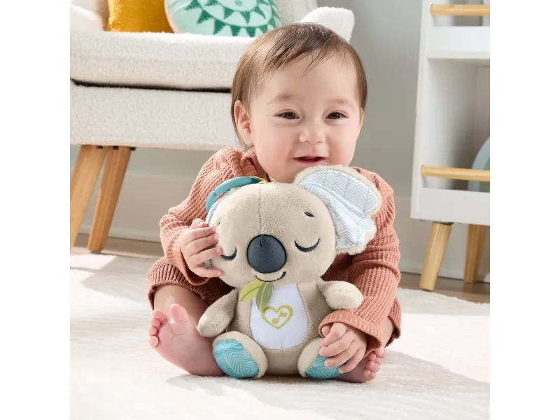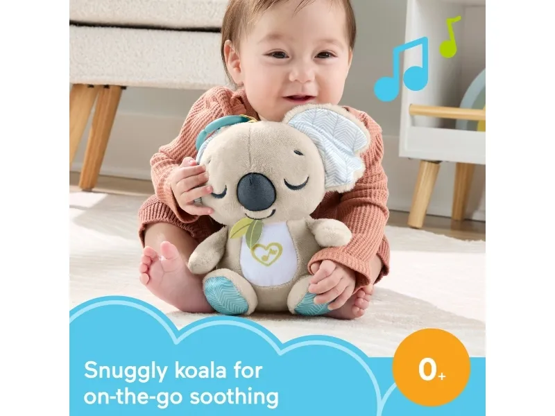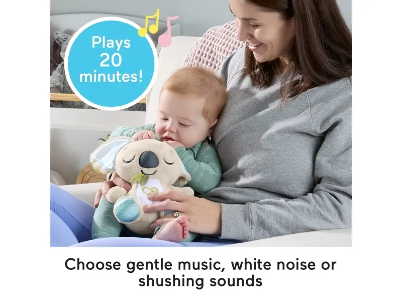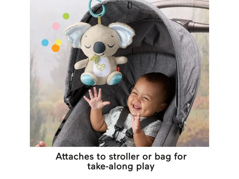 Baby can settle in for comforting cuddles, at home or on the go, with the On-the-Go Koala Soother plush toy from Fisher-Price. Styled like an adorable koala, this customizable portable sound machine plays up to 20 minutes of gentle music, white noise, or shushing sounds to calm your newborn the way they like best. Featuring soft plush fabric, satiny ears, and fun ribbon taggies for sensory exploration, the On-the-Go Koala Soother is an excellent travel companion for your little one. Requires 2 AAA batteries, included. Colours and decorations may vary.Fisher-Price On-the-Go Koala Soother Toy, Plush Portable Sound Machine for Newborns. Product type: Toy koala, Recommended age (max): 2 yr(s), Interactive, Sounding. Battery type: AAA. Batteries included