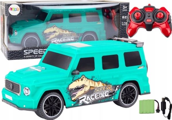 LeanToys fjärrstyrd RC-bil med dinosaur i skala 1:10 grön