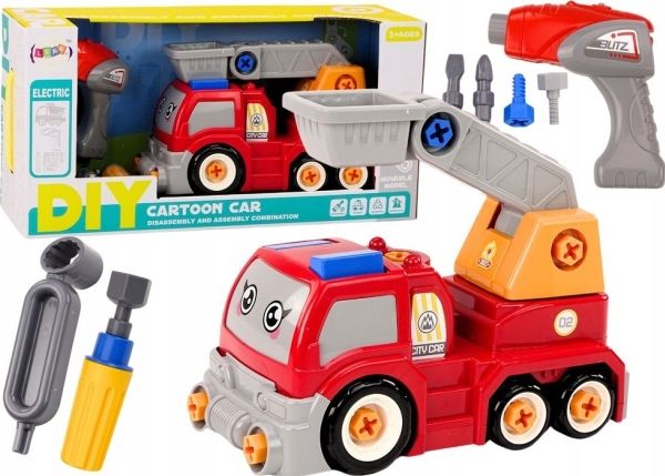 LeanToys lastbil med bom, byggset, tecknad, röd