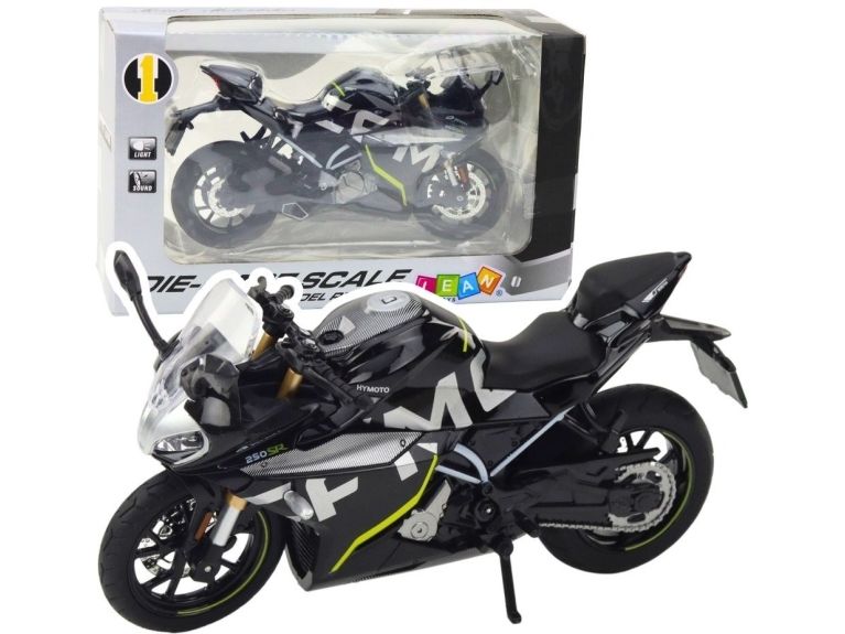 Sportmotorcykel i metall med ljus och ljud Svart 250 SR 1:12