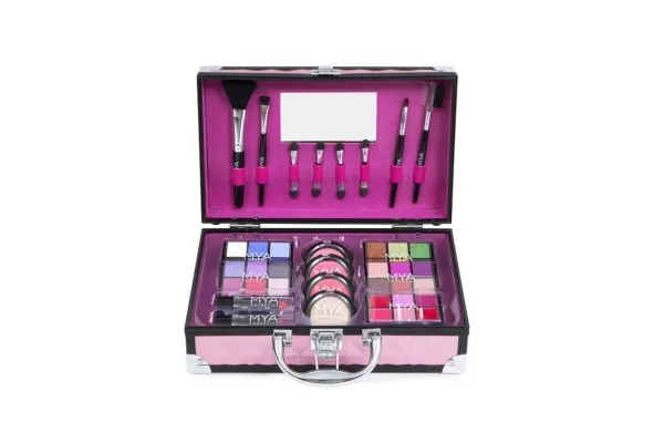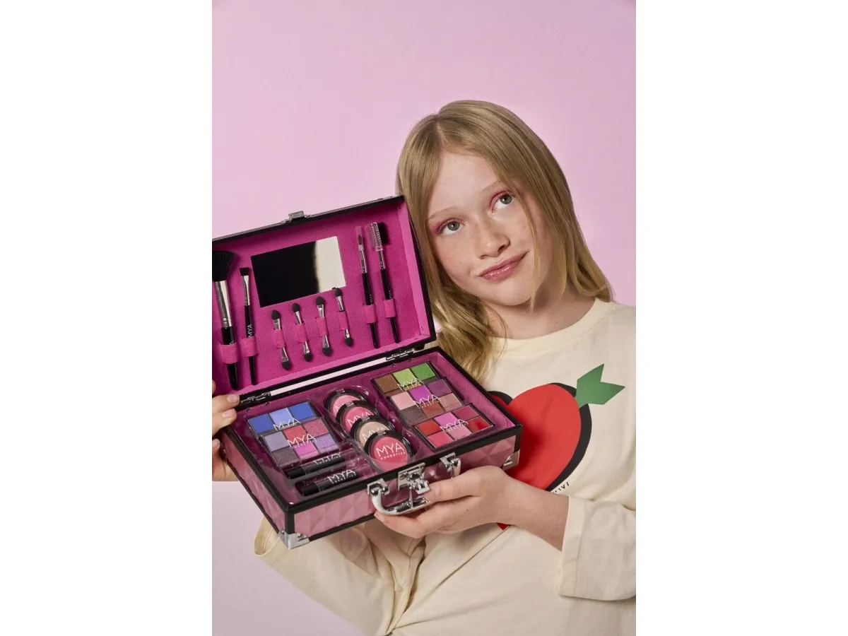 The MYA Deluxe Makeup Case is fully equipped with lots of colours, foam applicators and brushes to get your glam on! Everything is stored in a gorgeous pink and black case that is convenient for storage and can be easily transported for sleepovers and parties. The MYA Deluxe Makeup Case is the perfect companion for budding makeup artists, let the make over magic begin!