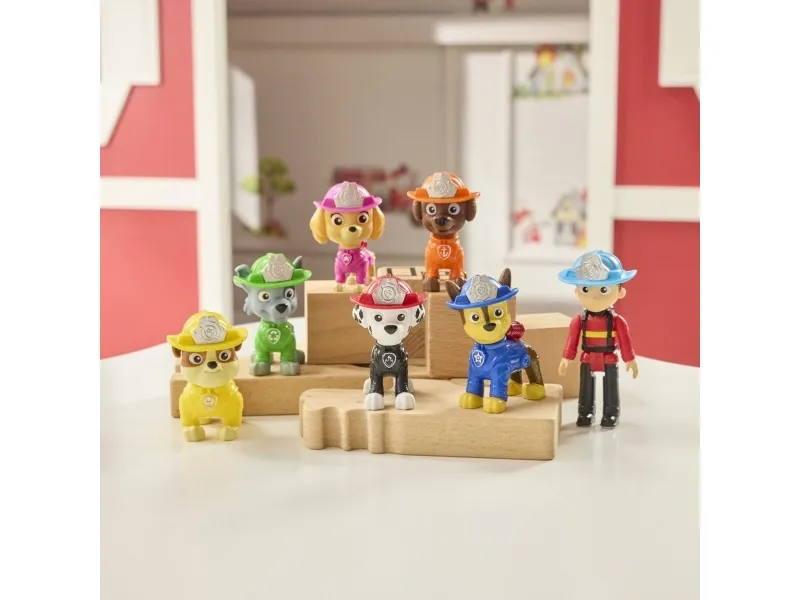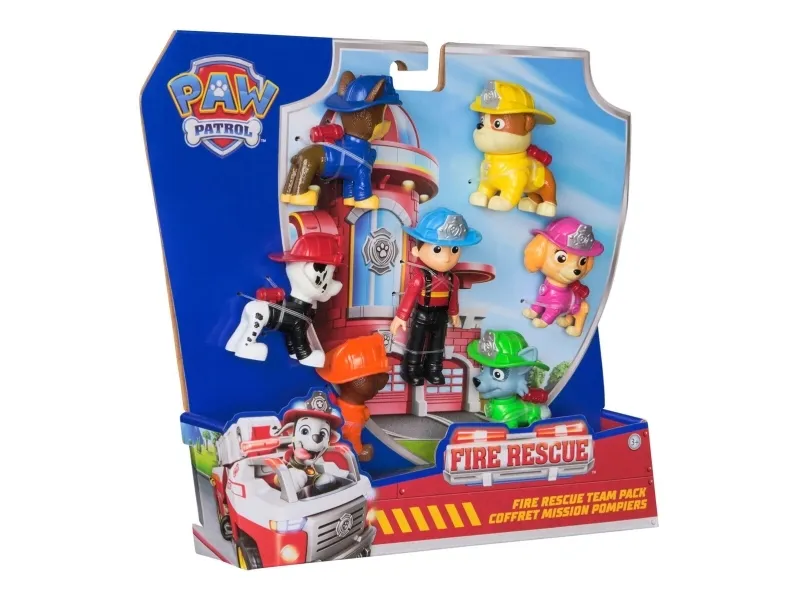 Join the PAW Patrol Fire Rescue Team and dive into heroic adventures with these collectible toy figures! This exciting set includes 7 collectible figurines featuring Chase, Marshall, Skye, Rubble, Rocky & Zuma, along with Ryder, who stands over 3 inches tall with a movable head and limbs. Each figure is decked out in their all-new fire rescue gear, ready to tackle any emergency that comes their way. Kids can recreate their favorite scenes from the show or create their own adventures, igniting their imagination and storytelling skills. These PAW Patrol learning toys are PAWsome for a birthday, or any holiday. For even more fun, combine with the Fire Rescue Command Center, Rapid Reload Fire Truck & six different Fire Rescue figures & vehicles, so the excitement never ends. (each sold separately) Relive cherished moments from past PAW Patrol seasons, like the Mighty Pups and PAW Patrol Movie, or create new adventures with a PAW Patrol tower, individual PAW Patrol action figures and their PAW Patrol vehicles, for turbo-charged adventures.PAW Patrol Fire Rescue Team Pack with 7 Collectible Action Figures, Including Ryder & 6 Pups, Kids Toys for Boys & Girls Ages 3 and Up. Recommended age (min): 3 yr(s), Product colour: Multicolour