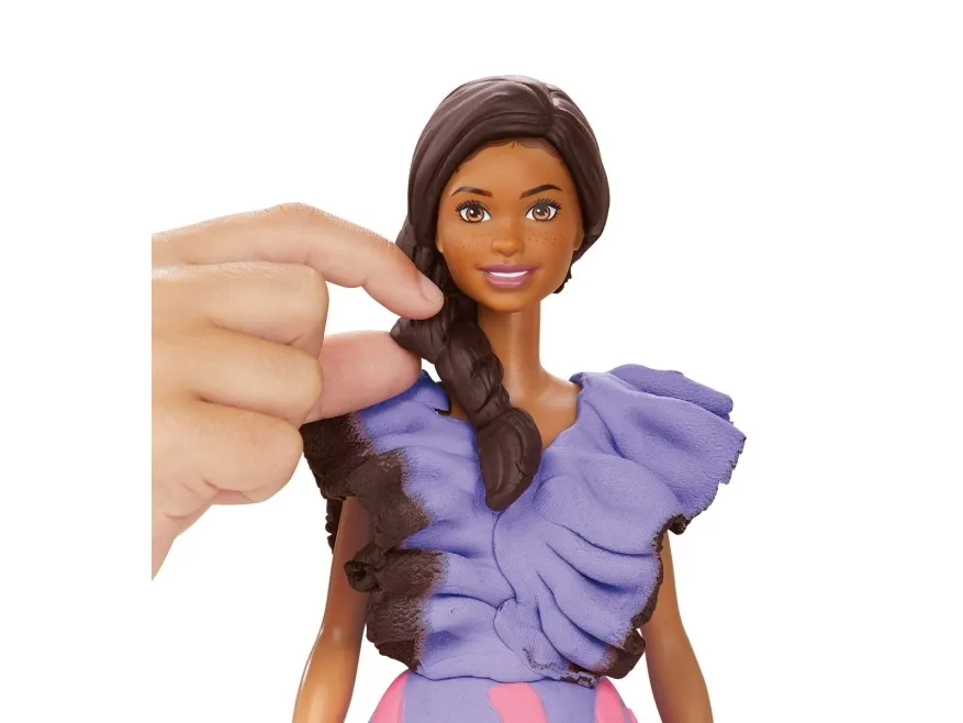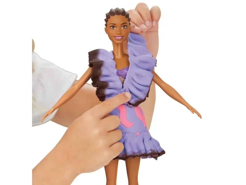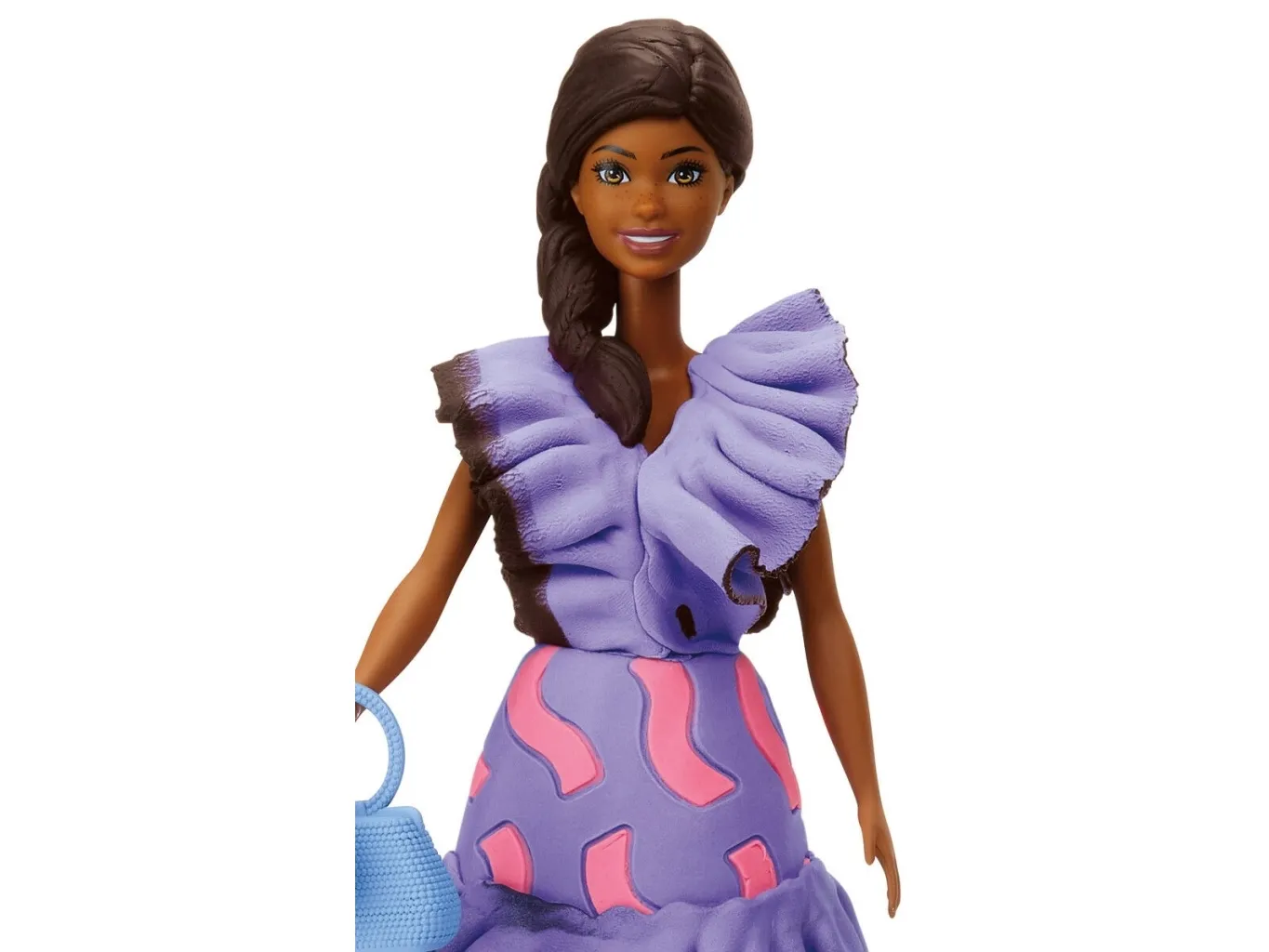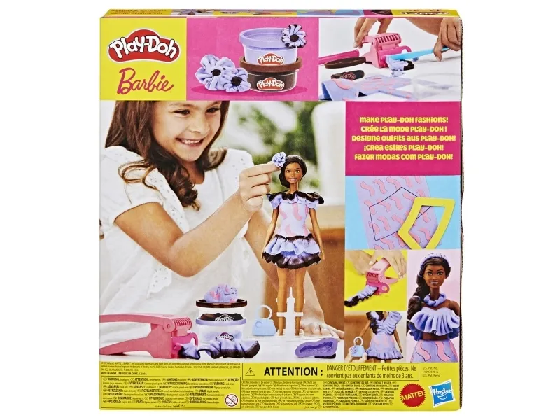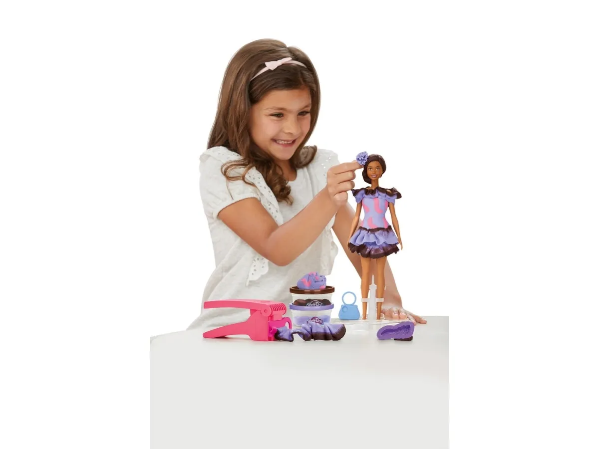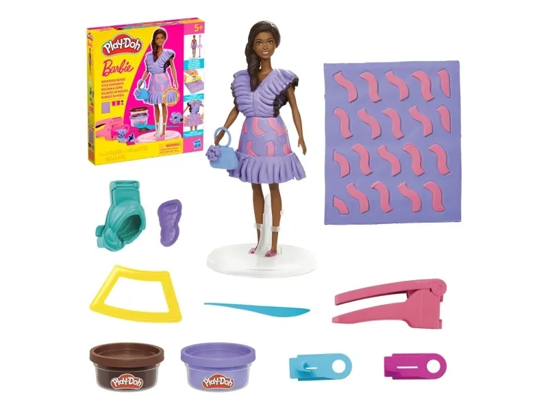 Create super cute styles with the Fashionista Ruffles set! It's easy and fun to make Play-Doh Barbie doll clothing with this arts and crafts kit. Just place the doll on the stand, use the Play-Doh Pattern sheet and cutters to cut Barbie dresses, and dress her up in the most creative ways imaginable. Give her 2 different Play-Doh hairstyles with the short and long hair molds, or kids can make their own by hand. Add Barbie doll accessories like a purse and shoes to complete her look. Keep the imaginative play going with 2 cans of Play-Doh modeling compound to add even more details. Give a fabulously fashionable gift for kids who love Barbie playsets and Play-Doh toys!Copyright 2025 Mattel.PLAY-DOH and HASBRO and all related trademarks and logos are trademarks of Hasbro, Inc.
