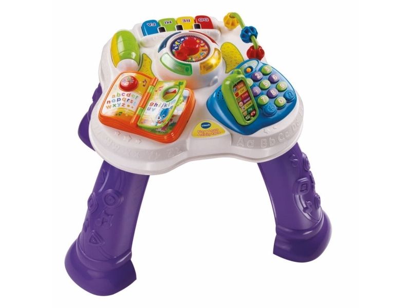 Sit-to-Stands™ Learn & Discover-bord växer med ditt barn och transformeras från en golvleksak till en dubbelverkande pedagogisk aktivitetsbräda. Ditt barn kan växa och utvecklas med hjälp av den interaktiva elektriska panelen med sex lärstationer. Din bebis kommer att älska att låtsas prata i telefon, trycka på de lysande pianotangenterna, leka med den interaktiva boken och mer. Roliga ljudeffekter och ljusmönster belönar ditt barns nyfikenhet och uppmuntrar upptäckter. Mer än 40 lekfulla sånger att sjunga med i, melodier, ljudeffekter och roliga fraser gör det ännu roligare. Learn & Discover-bordet introducerar bokstäver, siffror, former, färger, hälsningar och tidskoncept. Ha kul med en aktivitetsbräda som växer med ditt barn!