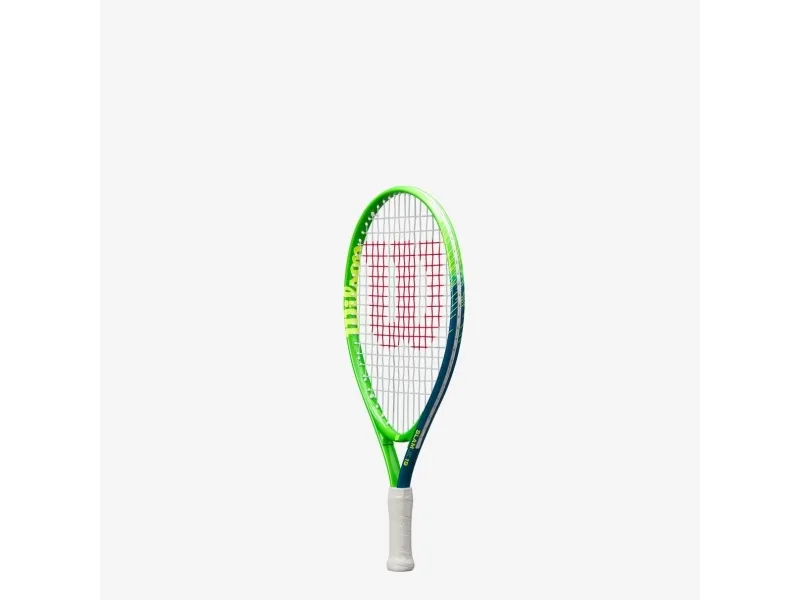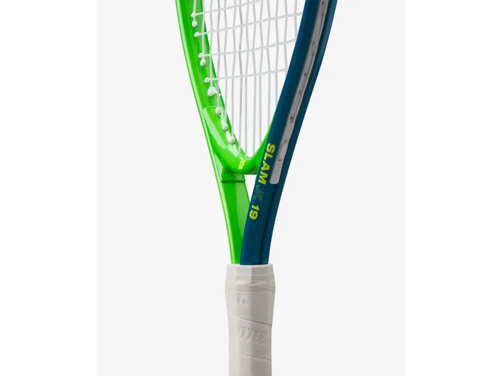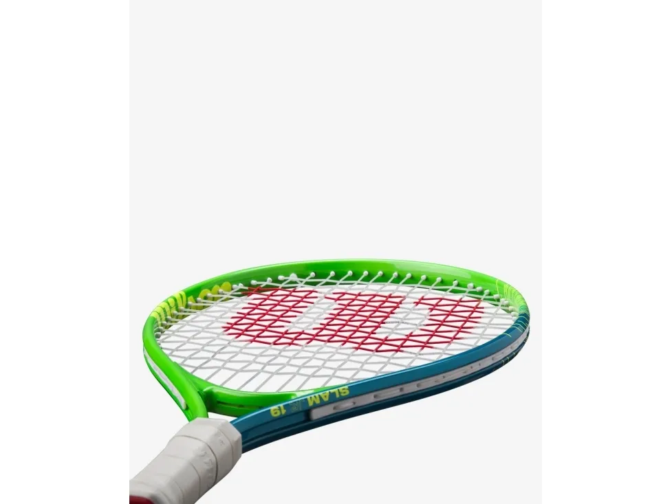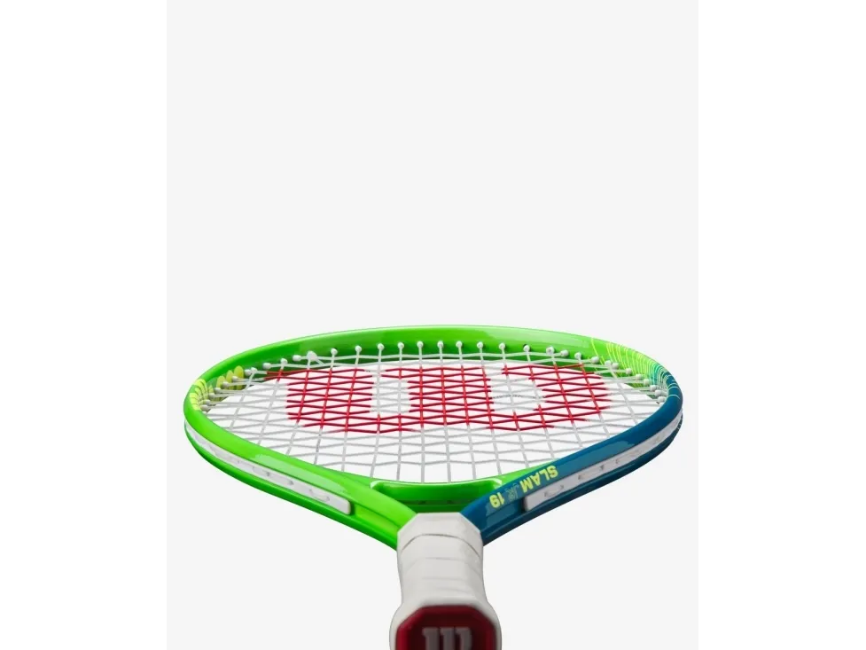 Give young players a feel for the game with Wilson's Slam JR 19 tennis racket. Featuring a fun, youthful design with bright, vibrant colors, this lightweight, easy-to-handle tennis racket with performance-ready playability is perfect for the youngest players on the court. The AirLite Alloy aluminum frame provides lightweight durability with impressive strength. Frame technologies optimized for beginners make this racket stable, powerful and easy to maneuver, so new players can experience success every time they step onto the court. This pre-strung 19-inch racket comes tuned and ready to play. Recommended for players aged 4 and under.Wilson Slam Jr 19. Product colour: Blue, Green, White, Racket head size: 529 cm², Racket string pattern: 16 x 17. Height: 483 mm, Strung weight: 180 g, Unstrung weight: 168 g. Number of rackets included: 1 pc(s)