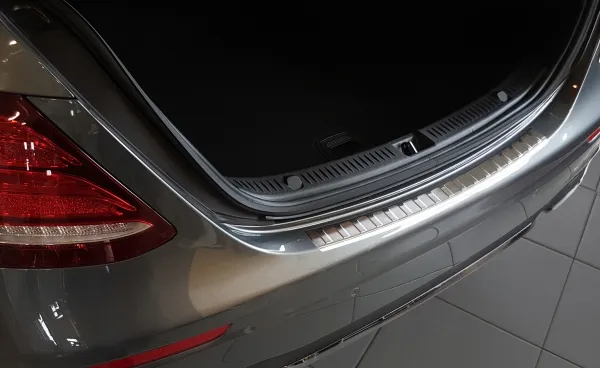 Avisa Læssekantbeskytter til Mercedes E Klasse W213 Sedan 2016-2023 - Stål Undgå ridser og slidmærker på bagkofangeren med en læssekantbeskytter fra Avisa, når lasten skal læsses. Denne læssekantbeskytter er formstøbt og specielt designet til at passe perfekt til din bils læssekant, hvilket sikrer optimal beskyttelse og giver et elegant udseende. Den monteres nemt uden brug af værktøj, på få minutter. Du undgår dermed besværet ved komplekst installationsarbejde. Avisa læssekantbeskytteren er den perfekte løsning til din bil, fordi den både har beskyttende funktioner og ser flot ud som et dekorativt element. Den er fastgjort ved hjælp af dobbeltklæbende tape, som er placeret på alle fire kanter af læssekantbeskytteren.
