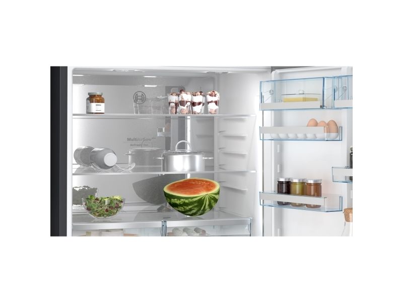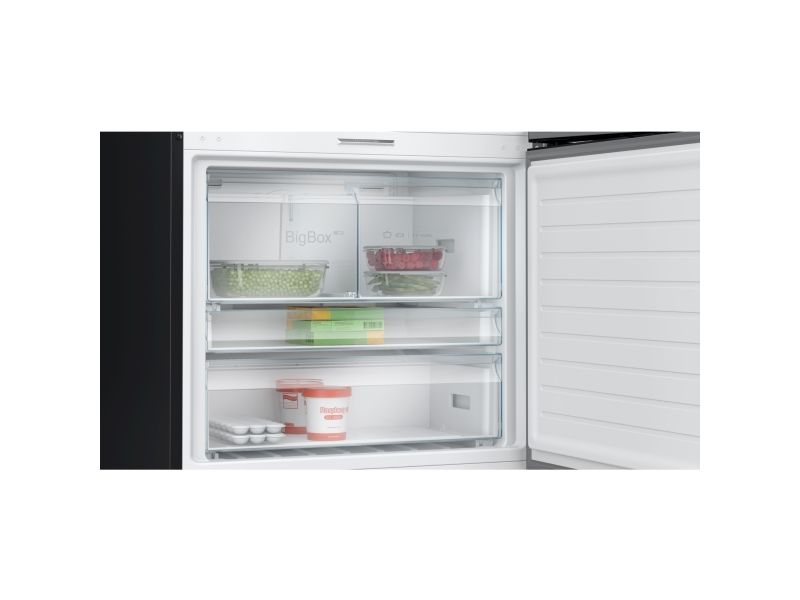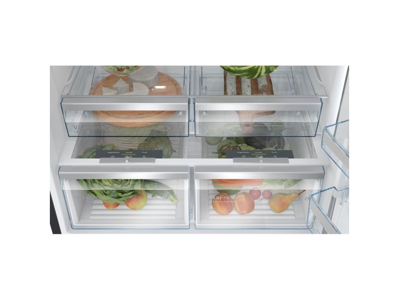 The Bosch Serie 8 KGP86AXB0N refrigerator offers a balance of style and functionality. Equipped with a digital display located on the door, it ensures easy access to settings and features. This refrigerator/freezer boasts a total net capacity of 621 liters, with a refrigerator net capacity of 419 liters and a freezer net capacity of 202 liters. The variable temperature compartment in the freezer allows for versatile storage options, while the fast freeze feature enables quick freezing of items, making meal prep easier.