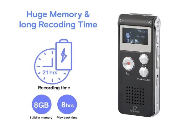 Renkforce RF-DVR-L169 digital diktafon inspelningstid max. svart (RF-6691332)