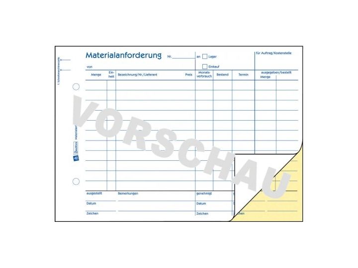 Avery Zweckform - Materialbeställningsformulär - 50 ark - A5 (148 x 210 mm) - Kopia - självkopierande