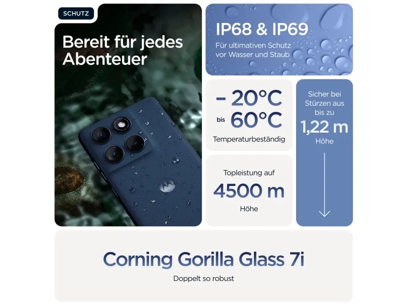 Fotograferingsentusiaster kommer att uppskatta det tredubbla kamerasystemet som inkluderar en 50-megapixel huvudsensor, en makrokamera och ett teleobjektiv, vilket möjliggör mångsidiga fotograferingsalternativ. Enheten stöder också olika navigationstekniker som GPS, A-GPS, GLONASS och Galileo, vilket säkerställer att användarna enkelt kan hitta vägen. Med en skyddande design som uppfyller IP68- och IP69-standarderna är Motorola Edge 60 tålig mot damm och vatten, vilket gör den lämplig för daglig användning i alla miljöer.