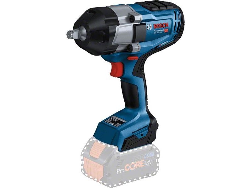 The GDS 18V-1000 Professional is the powerful 1/2" impact wrench with BITURBO Brushless technology. Its cordless freedom with outstanding power is the outcome of the high-performing brushless motor fully maximized for ProCORE18V batteries. The impact mechanism, which is designed to deliver a maximum tightening torque of 1,000 Nm and a maximum breakaway torque of up to 1,600 Nm, provides best performance for heavy duties. Three settings offer excellent control over speed/torque for high versatility.