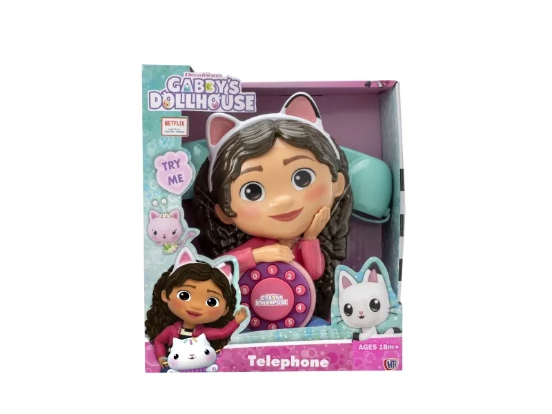 Gabbys dockhusformade fasta telefon ringer, lyft luren och svara! Du kan lyssna på den välbekanta signaturmelodin, telefonens ljud eller rösterna från Gabbys vänner. Innehåller 2 x AAA-batterier. 18 mån+