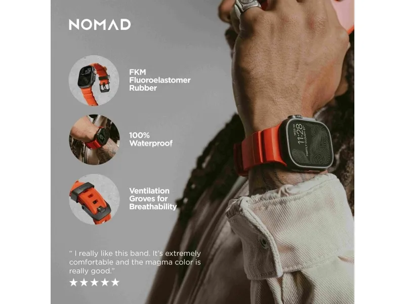 Nomad Rocky Point Band, Band, Smartwatch, Svart, Apple, Ultra / 46mm, Läder, Titan
