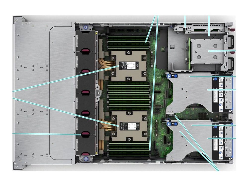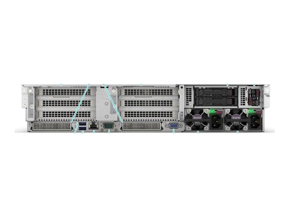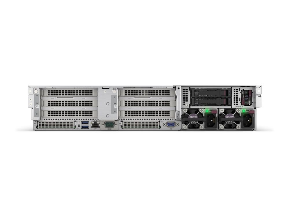 1 x HPE iLO (1 på framsidan) (service port) 5 x USB 3.2 Gen 1 (1 fram, 2 bak, 2 interna) 1 x VGA 2 x LAN (1/10 Gigabit Ethernet)