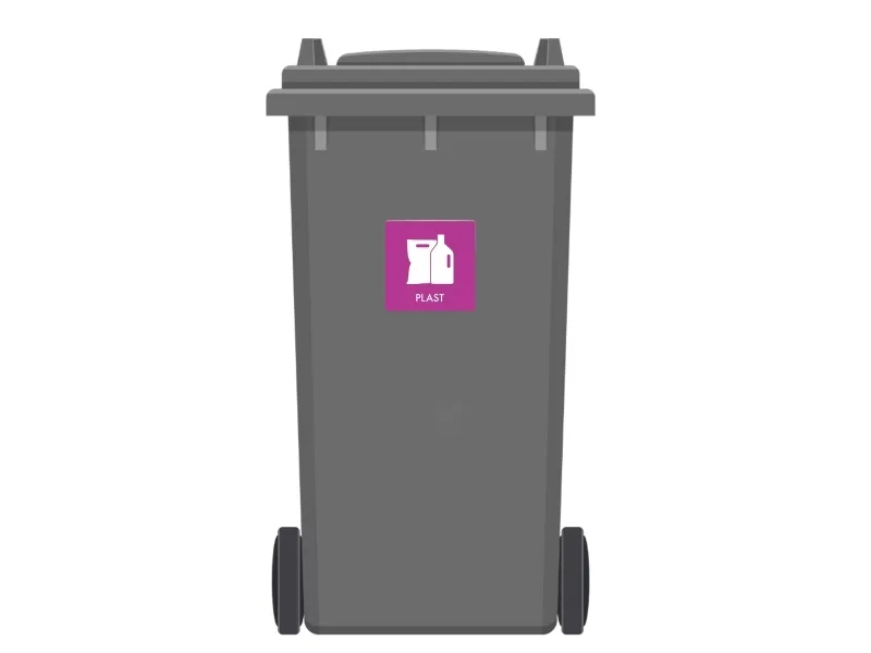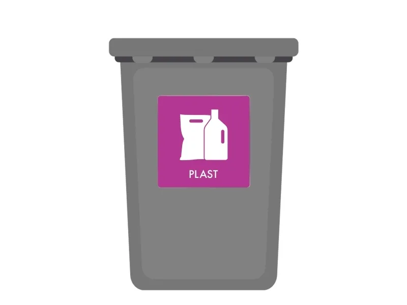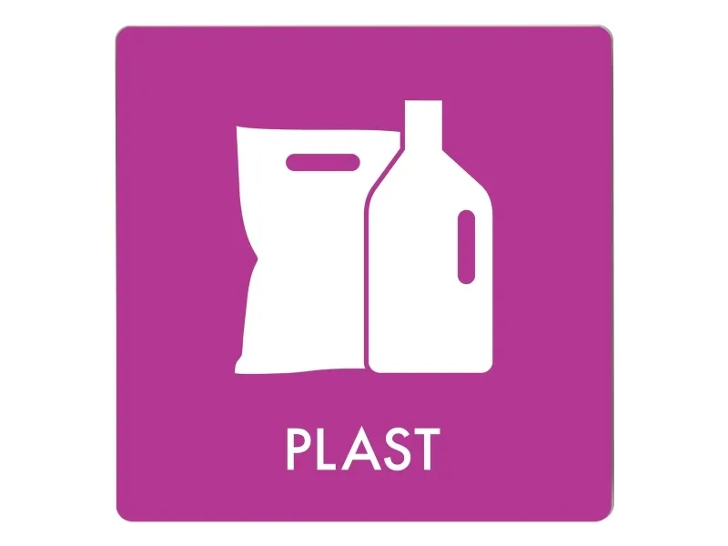 Avfallspiktogramskylt PLAST 12x12 cm, aluminium, lila/vit