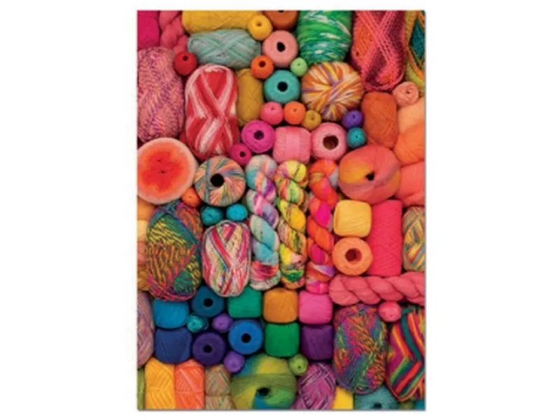 Puzzle with the image of colourful yarn. The set includes 500 puzzle pieces. Assembled puzzle: 48 x 34 cm. Includes fix puzzle, to stick the puzzle once assembled.