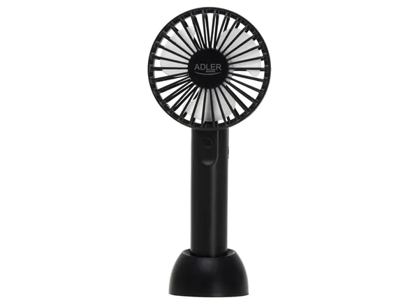 3 fan speeds. ABS housing. Noise level ?51.7dB. Stand for placing on a desk. Handle for holding in hands when carrying. Charging time 2.5 hours. Possibility of charging via PC USB port, phone charger or power bank.