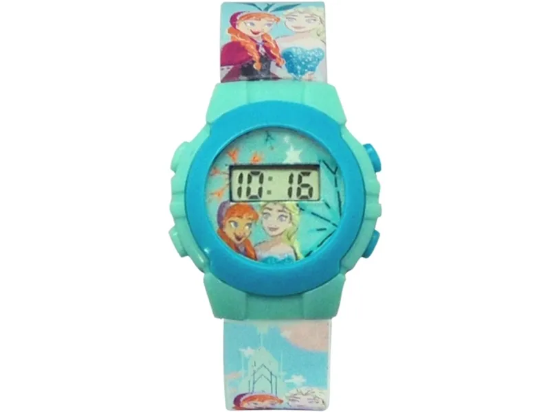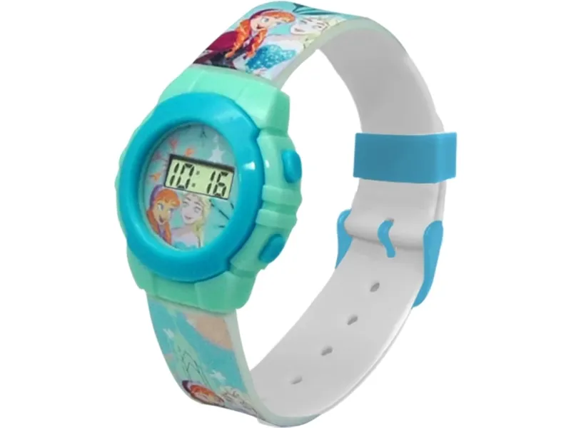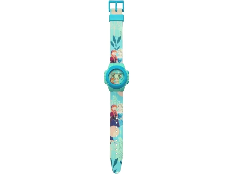 Upptäck den magiska världen av FROZEN med vår digitala armbandsklocka! Med färgglada motiv av Elsa och Anna blir varje sekund ett äventyr. Perfekt för små äventyrare som älskar att hålla koll på tiden med stil!