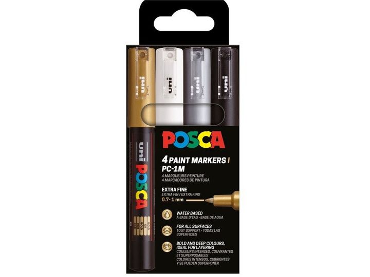 Posca PC-1M 4-pack set (svart, vit, guld, silver)