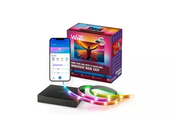 Signify WiZ LED-ljusstyrenhet ger inomhusbelysningen en ny nivå av bekvämlighet och mångsidighet. Denna styrenhet är kompatibel med 55–65-tums TV-apparater och förbättrar din tittarupplevelse genom att möjliggöra färgsynkronisering i realtid som anpassas efter ljud och miljö. Skapa stämning med valbara scenariolägen och njut av bekvämligheten med dimbara funktioner som skapar en idealisk atmosfär för alla tillfällen. Anslut enkelt via WiZ-appen för att styra dina inställningar trådlöst, så att du enkelt och effektivt kan anpassa din belysning. Denna eleganta enhet integreras sömlöst i ditt hem och bevisar att teknik kan vara både funktionell och stilren.