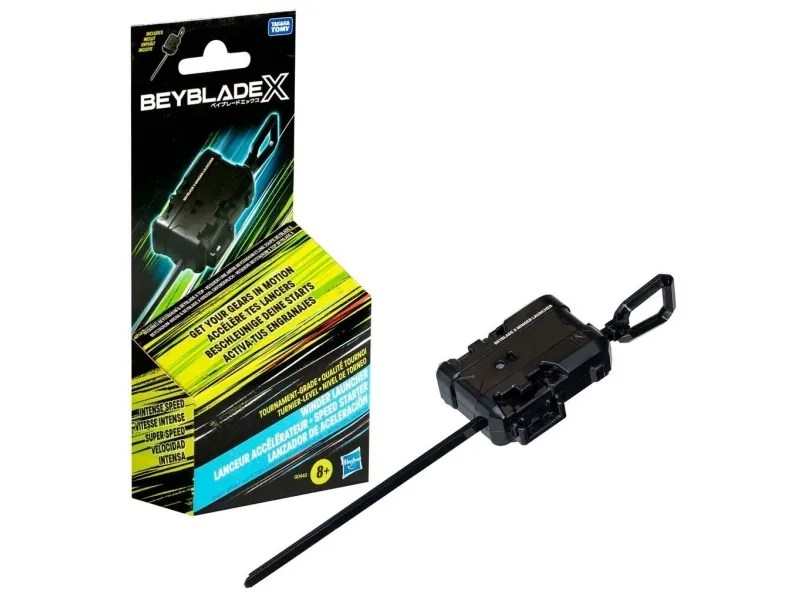 Upplev spänningen med nästa generation av Beyblade-snurror, Beyblade X. Beyblade X-snurravfyrare hjälper dig i strävan att bli en Beymästare. Den autentiska Takara Tomy-designade Beyblade X-snurravfyraren fungerar med X-Celerator-kugghjulssystemet för att nå nästa nivå i spelet och bevisa det i strid! När kugghjulet på Beyblade X-snurran hakar i skenan på Beystadium (båda säljs separat) kan det accelerera supersnabbt till en Xtrem hastighet runt stadion med krossande kollisioner och episka explosioner. Dra i det 20 cm långa dragsnöret på snurravfyraren i turneringsklass och frigör snurran i ett rasande tempo. Bladers avfyrar sina snurror mot varandra och får poäng efter varje strid – den som först når fyra poäng vinner. Kombinera de utbytbara klingorna, spärrhjulen och nycklarna med lagren i andra Beyblade X-snurror och skapa din egen oslagbara Bey. Hasbro Beyblade-leksaker med autentiska Takara Tomy-snurror med metallfigurer är utmärkta presenter för alla barn från 8 år. HASBRO och alla relaterade varumärken och logotyper är varumärken som tillhör Hasbro, Inc.