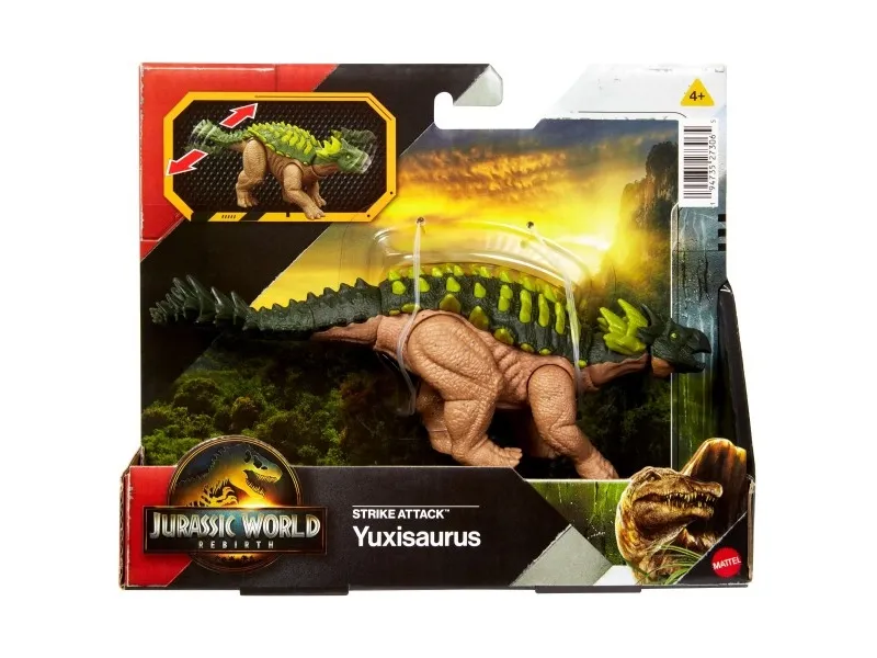 Each Jurassic World Strike Attack dinosaur toy has a single strike feature, movable joints and realistic sculpting and decoration. These action figures inspired by Jurassic World Rebirth make a great gift for ages 4 years and up. Each sold separately, subject to availability. Scan the Tracking Code on the dinosaur's foot in the free Jurassic World Play App with a compatible smart device (Android or iOS, not included) to unlock a digital version of the dinosaur and play the fiercely fun game to race various vehicles on land, air and sea. Colours and decorations may vary.Jurassic World Rebirth Strike Attack Yuxisaurus Dinosaur Toy, Single Strike Action, Authentic & Posable. Recommended age (min): 4 yr(s), Product colour: Multicolour